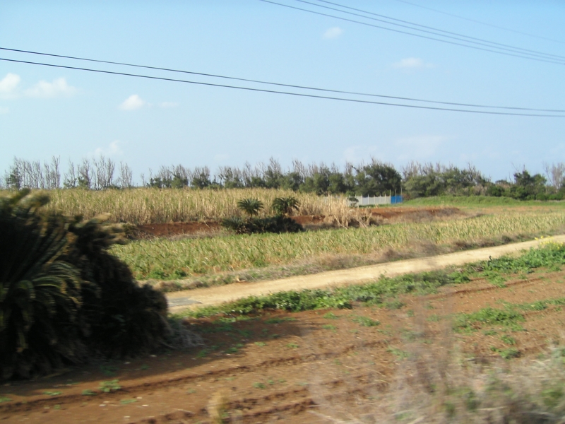左の写真は笠石(かさいし)公園という場所で、海水浴場やイベントなどに使う公園があります。 真ん中の写真は、越山(こしやま)公園という和泊町にある山の頂上です。 右の写真は畑道ですが、全体的にこんな風景が多いのどかな所です。 |